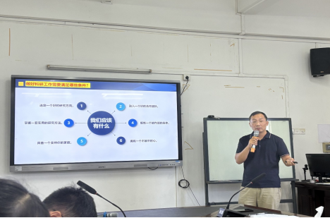刘伟明阐述了科研工作的重要性,并从五个方面谈了科研工作思路,包括科研工作的定位、科研工作的平衡、科研工作的条件、科研工作的支持、科研工作的交流与合作。他强调,科研不仅是学校高质量发展的必然要求,也是教师自身发展的必然要求。
