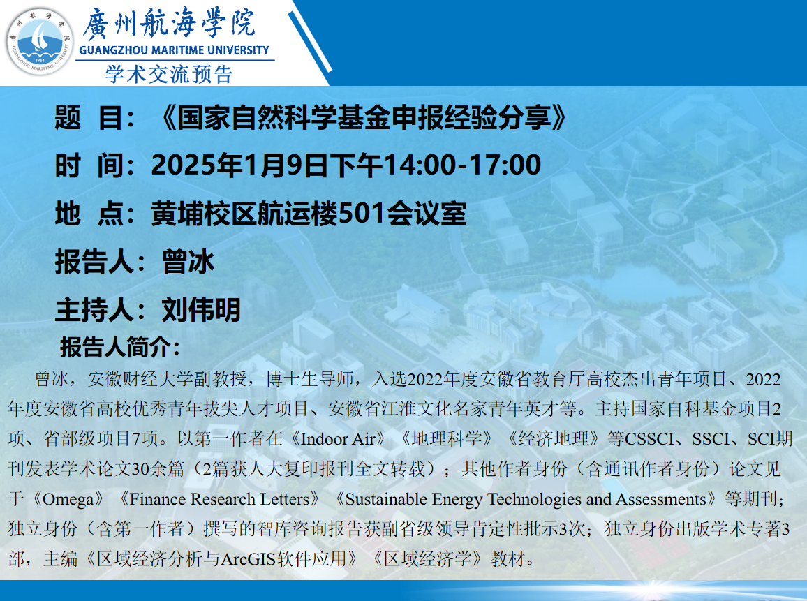 学术交流预告:曾冰《国家自然科学基金申报经验分享》